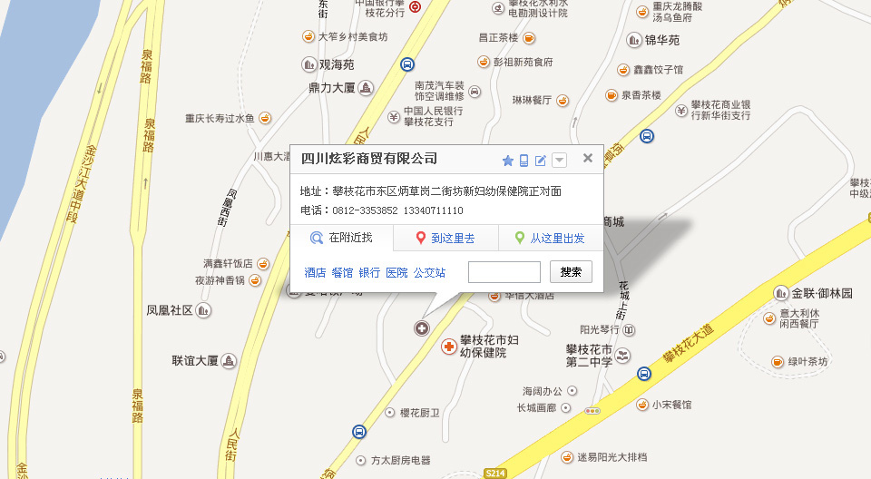地 址:成都市金牛區(qū)花圃路1號2樓A區(qū)202號  (攀枝花)攀枝花市東區(qū)炳草崗二街坊新婦幼保健院正對面